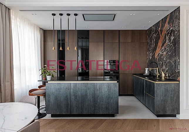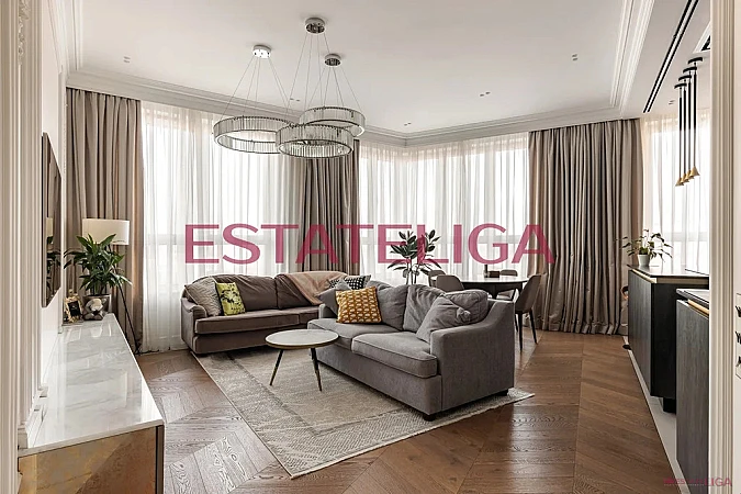 Выполнен качественным ремонтом (итальянская плитка, сантехника, мебель, немецкий свет, система очистки воздуха, канальный кондиционер) с премиальной техникой (техника на кухне Kuppersbusch, стиральная и сушильная машина Asko). Матрасы King Koil. Дизайнерская отделка в современном стиле и светлых тонах.