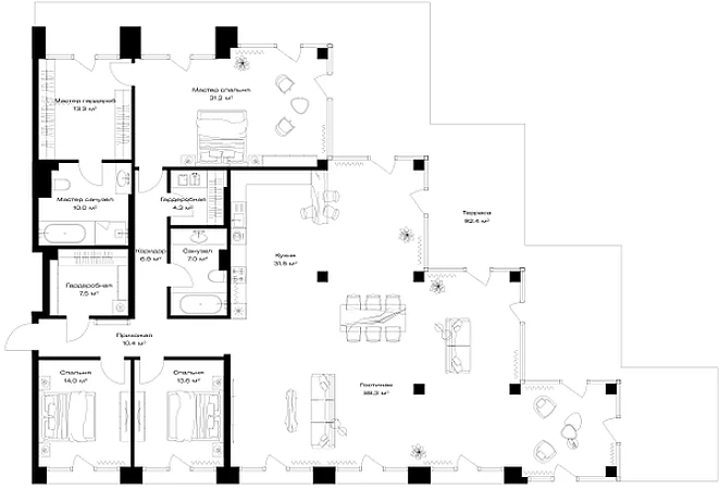 Купить 3к квартиру 265 м² в клубном доме OPUS