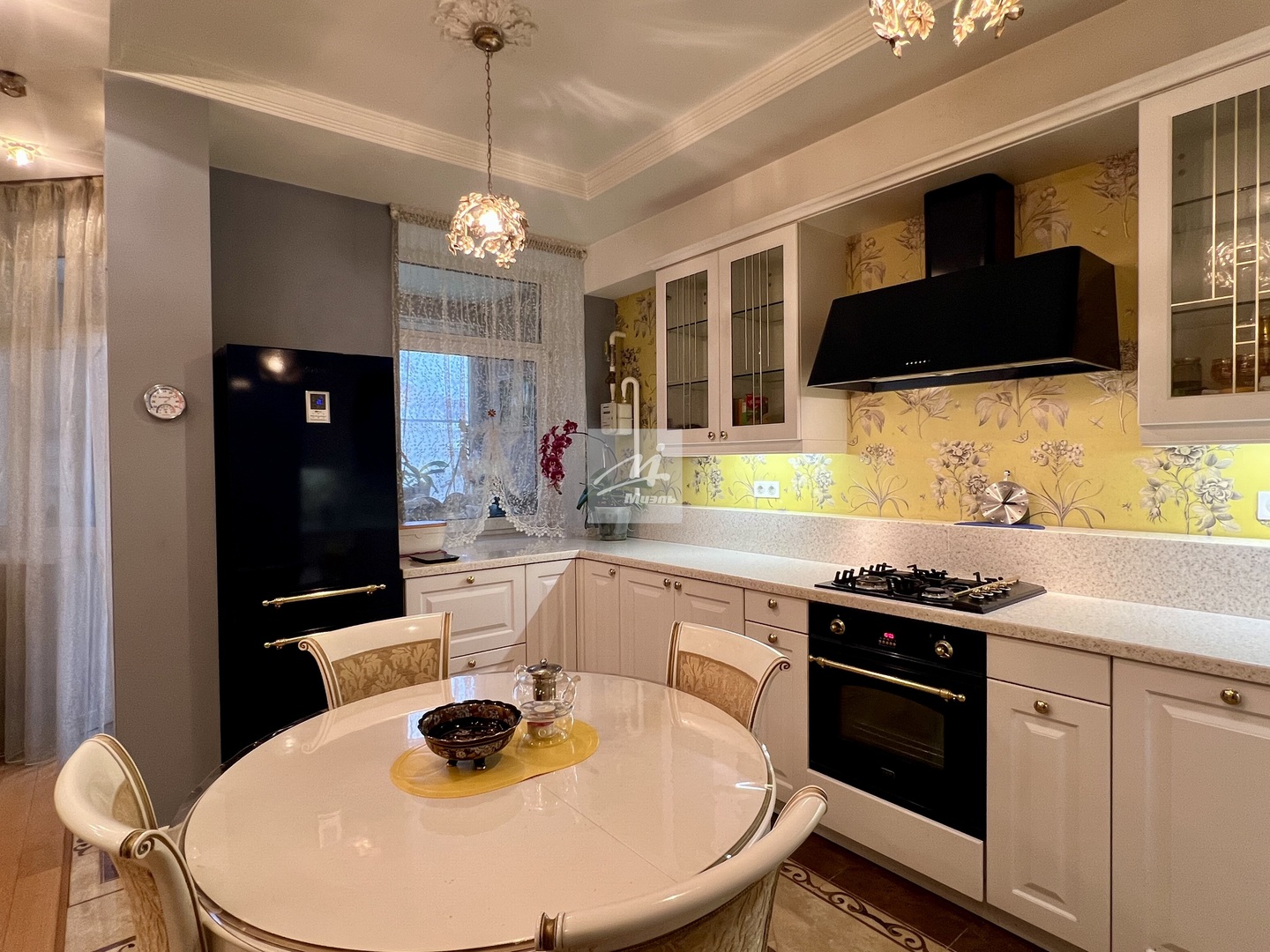 Мебель: кухонный гарнитур - производство Германия полностью оснащен премиальной техникой - холодильник, варочная панель, электрический духовой шкаф, вытяжка и посудомоечная машина.