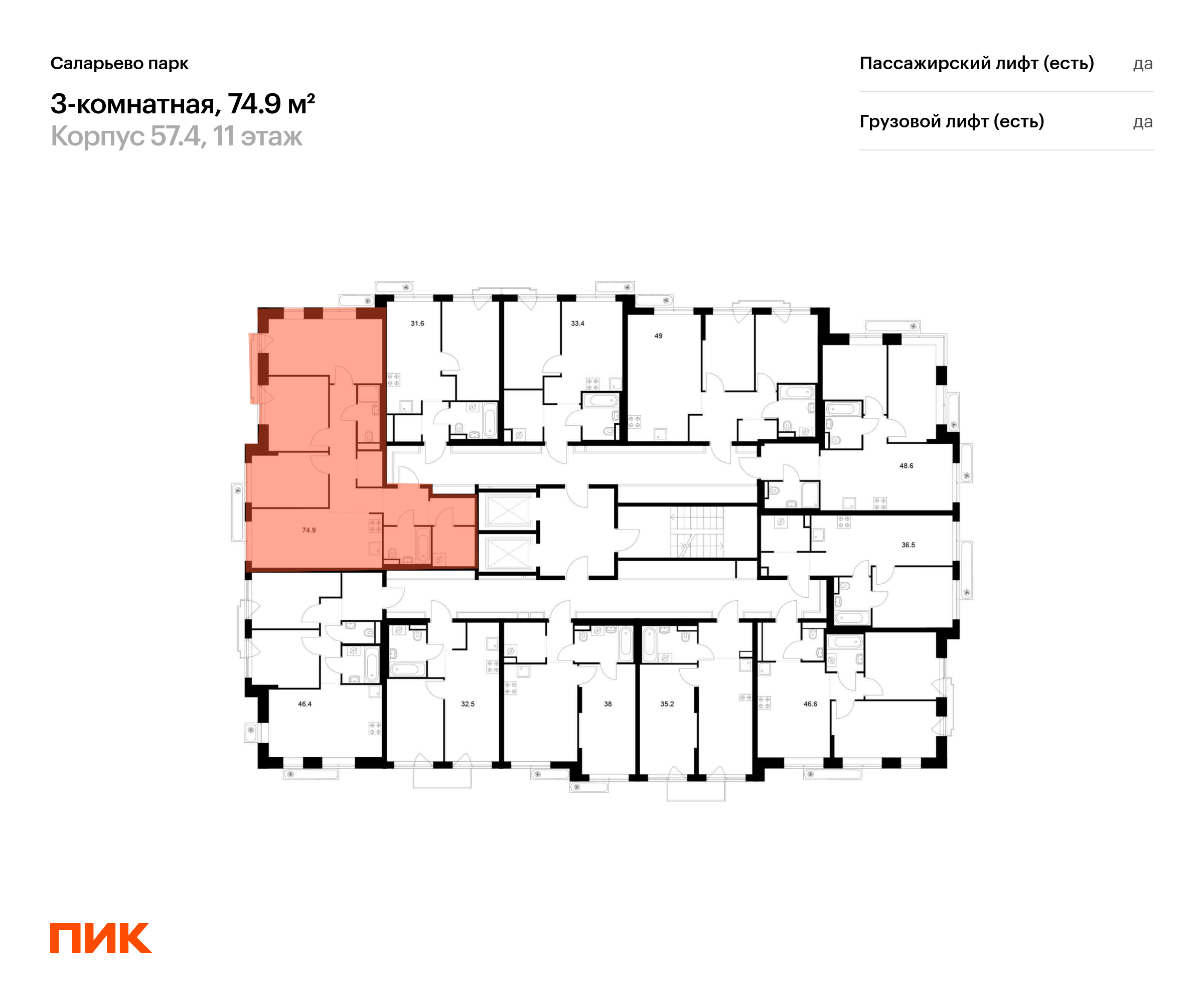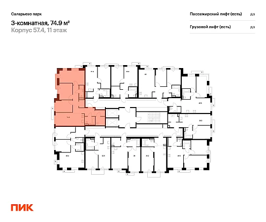 Продаётся 3-комн.квартира площадью 74.90 кв.м на 11 этаже 16 этажного дома (Корпус 57.4, секция 4) проекта ПИК Саларьево парк. Светлый просторный подъезд на уровне земли, функциональная планировка, большие окна, с отделкой.