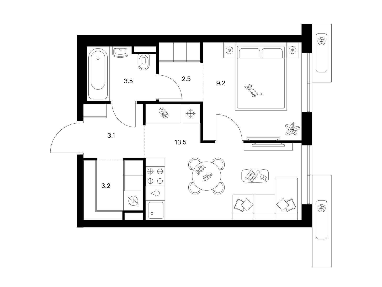 Во дворах-парках жилого квартала есть места для отдыха, детские и спортивные площадки. На первых этажах домов расположены магазины, кафе и полезные сервисы. Также вблизи проекта есть несколько масштабных торговых центров. До ТЦ «Саларис» пять минут пешком, до «Рио» и «Лемана Про» — пять минут на автомобиле. Артикул - 1018696