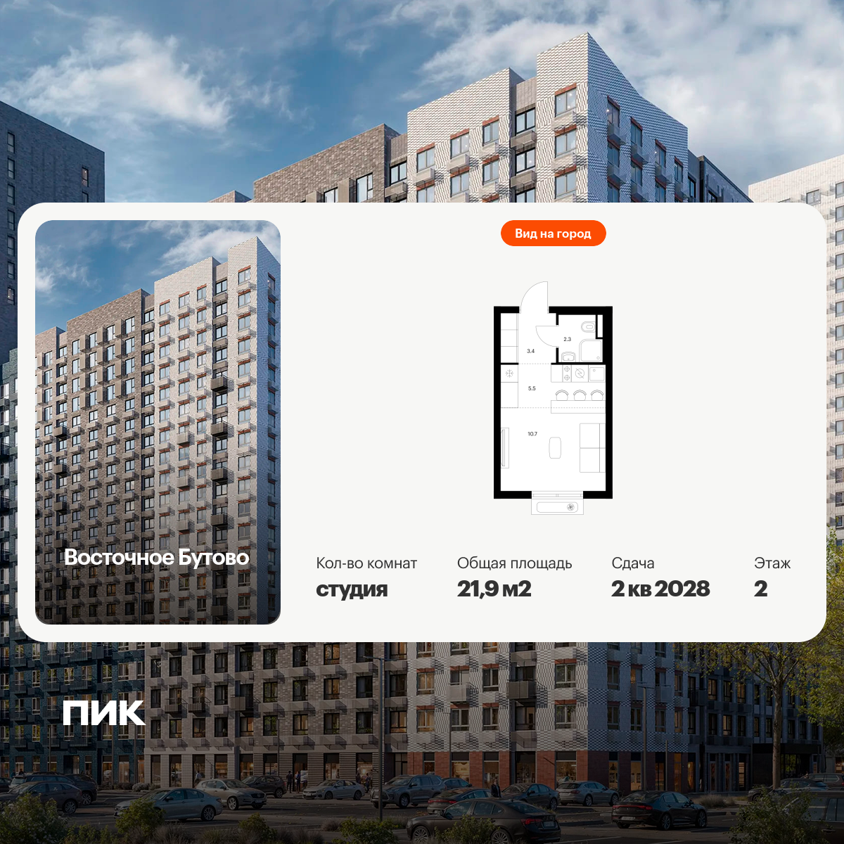 Продаётся квартира-студия площадью 21.90 кв.м на 2 этаже 25 этажного дома (Корпус 48, секция 4) проекта ПИК Восточное Бутово. Светлый просторный подъезд на уровне земли, функциональная планировка, большие окна, с отделкой.