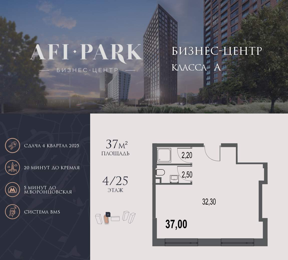 Купить офис 37 м² в МФК AFI Park Воронцовский