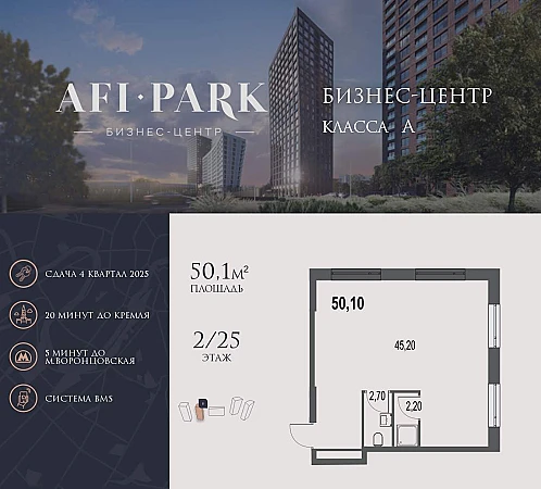 Купить офис 50 м² в МФК AFI Park Воронцовский