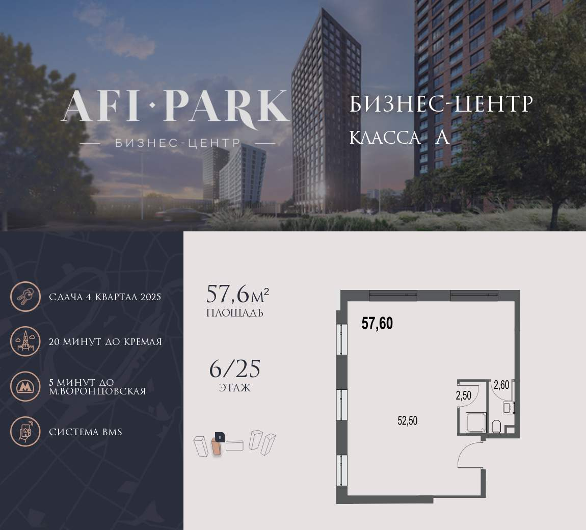 Купить офис 57 м² в МФК AFI Park Воронцовский