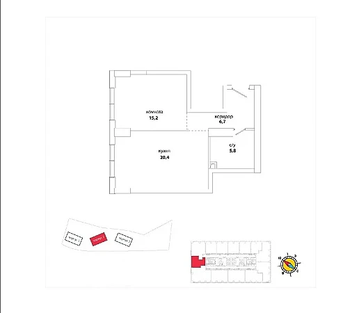 - планировка: спальня, кухня-гостиная, совмещенный санузел;