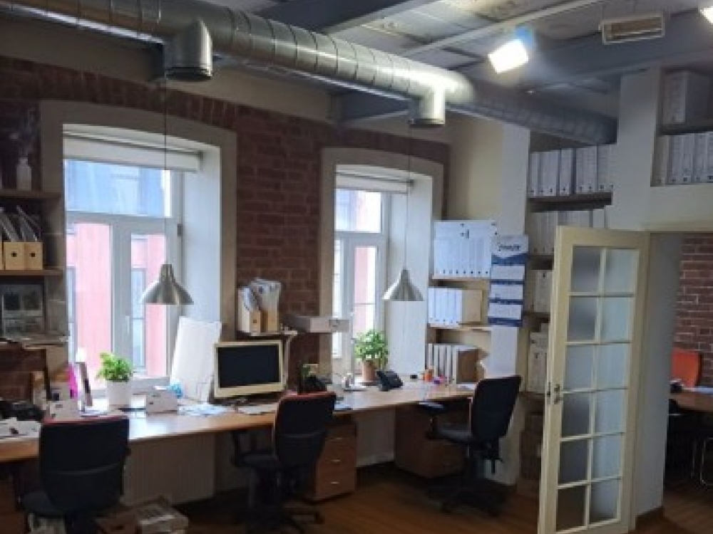. Смешанная планировка, четвертый этаж без лифта, ремонт в стиле лофт, сдается без мебели, есть кухня и свой с/у. В здании приточно-вытяжная вентиляция и кондиционирование.