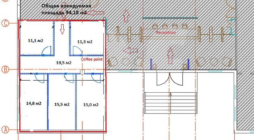 *Количество рабочих мест рассчитано автоматически: от 4,5 м2 на человека до 8 м2 на человека.