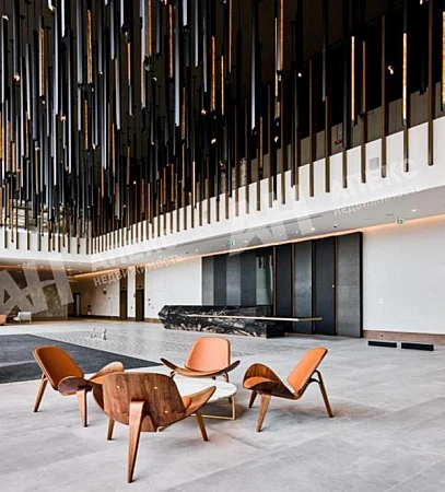 Помещение имеет смешанную планировку, которая включает в себя как отдельные кабинеты, так и пространства формата open space. Инфраструктура офиса включает: 3 кабинета, зоны open space, кухонную зону, зону ресепшн, санузлы и 3 переговорные комнаты. 95 рабочих мест оборудовано. Особое внимание уделено оснащению: установлена дизайнерская мебель премиум-класса, а большие панорамные окна обеспечивают обилие естественного света.
