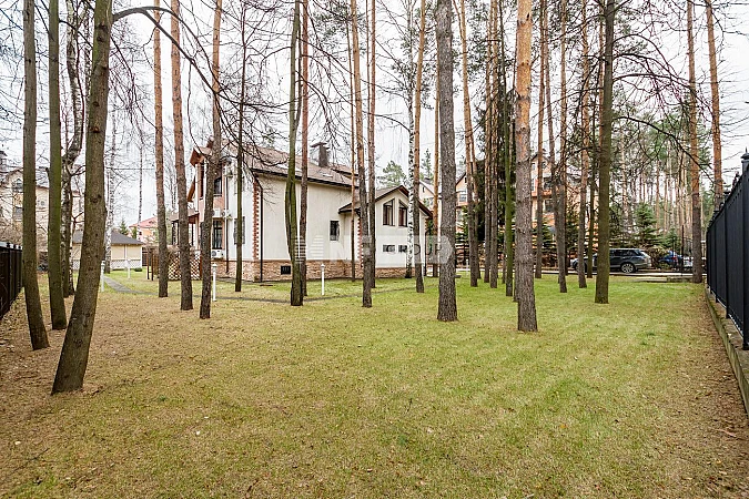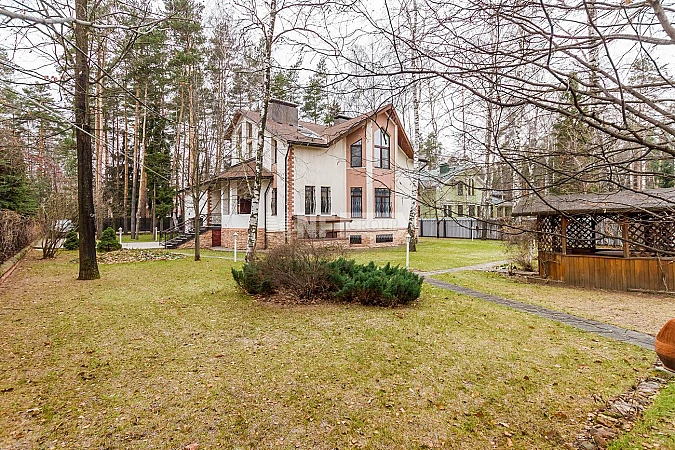 На участке хвойные и лиственные деревья, высажен газон, проложены прогулочные дорожки.