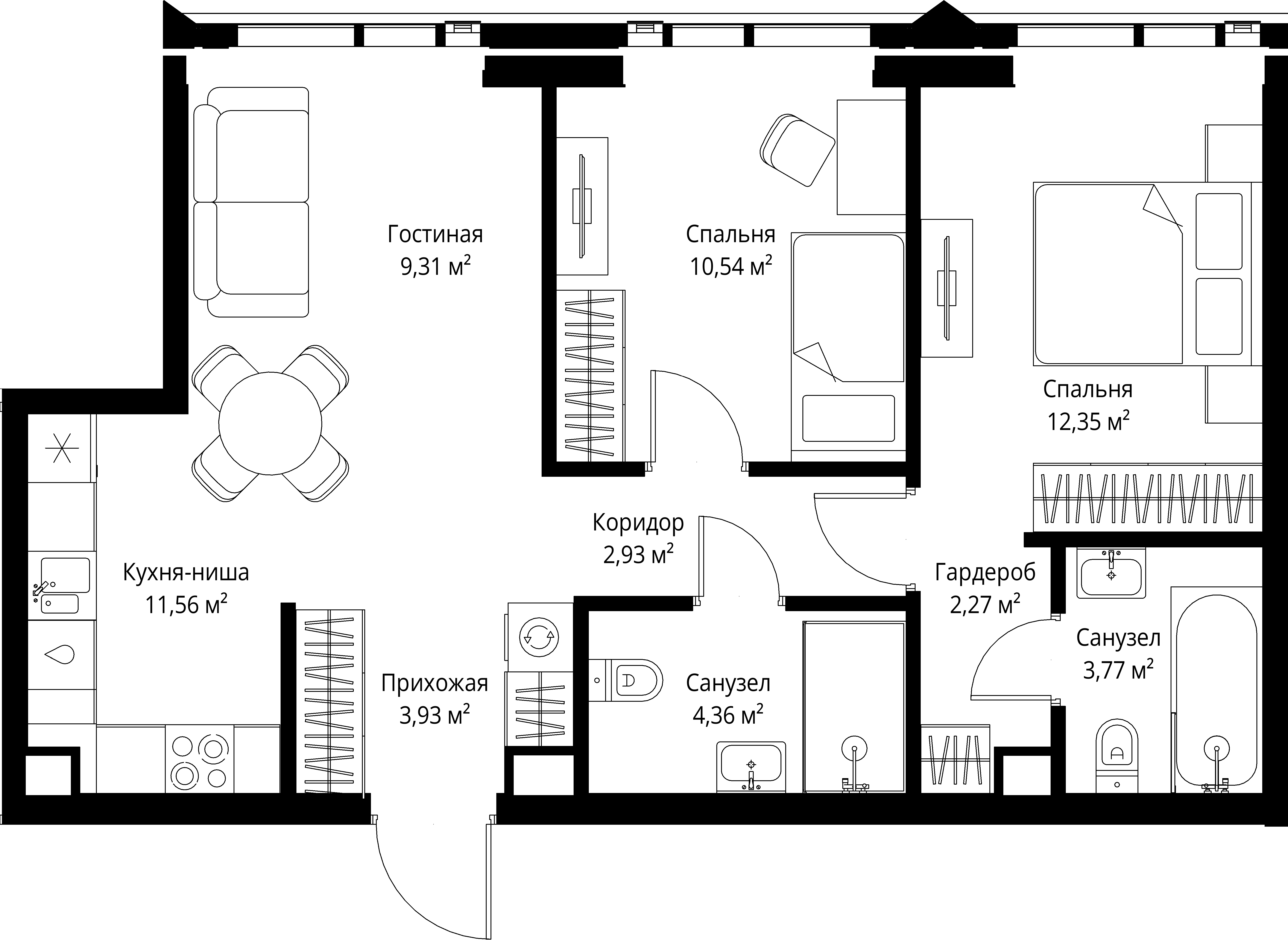 Купить 2к квартиру 75 м² в ЖК Павелецкая от Гранель