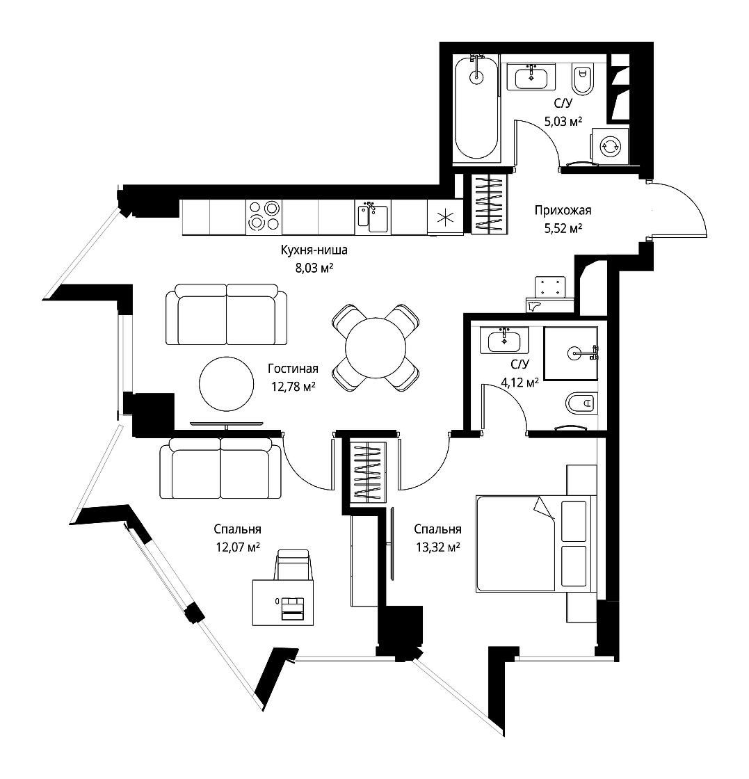 Купить 2к квартиру 76 м² в ЖК Павелецкая от Гранель