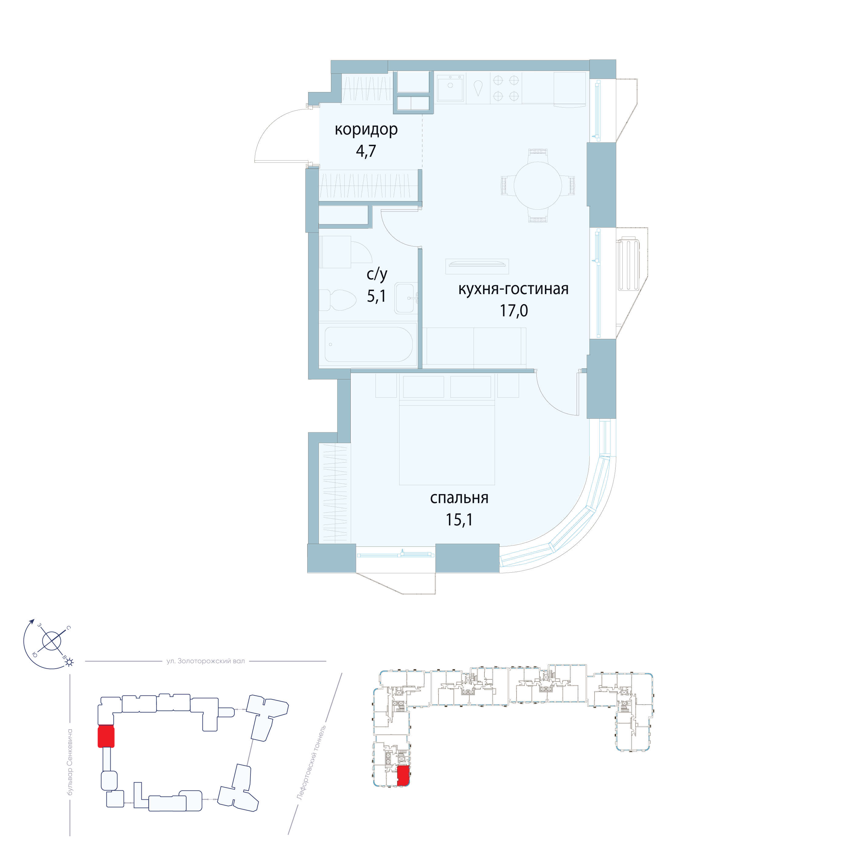Купить 2к квартиру 51 м² в ЖК Нижегородская от Гранель