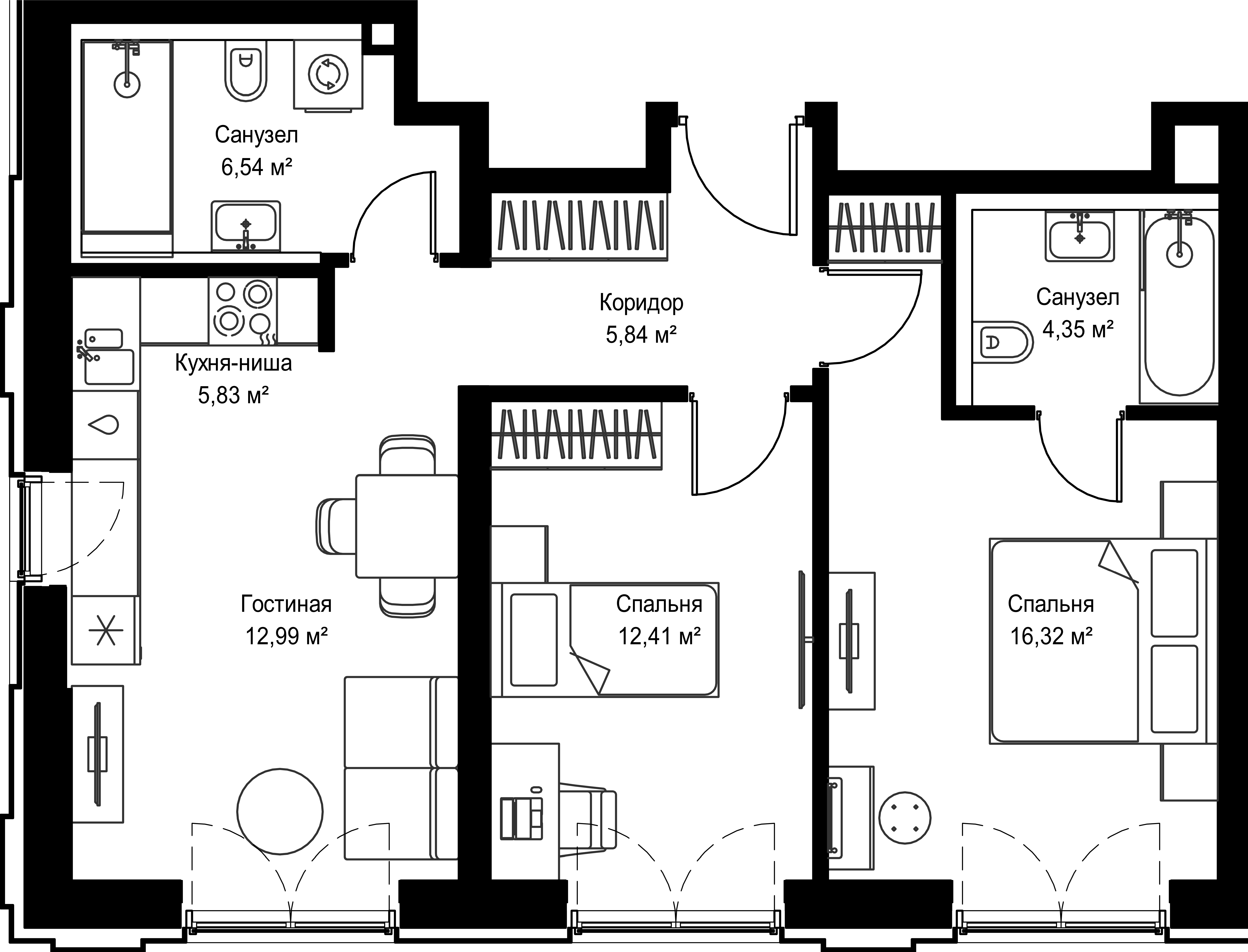 Купить 2к квартиру 61 м² в квартале Мневники от Гранель