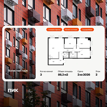 Купить 2к квартиру 67 м² в ЖК MYPRIORITY Павелецкая