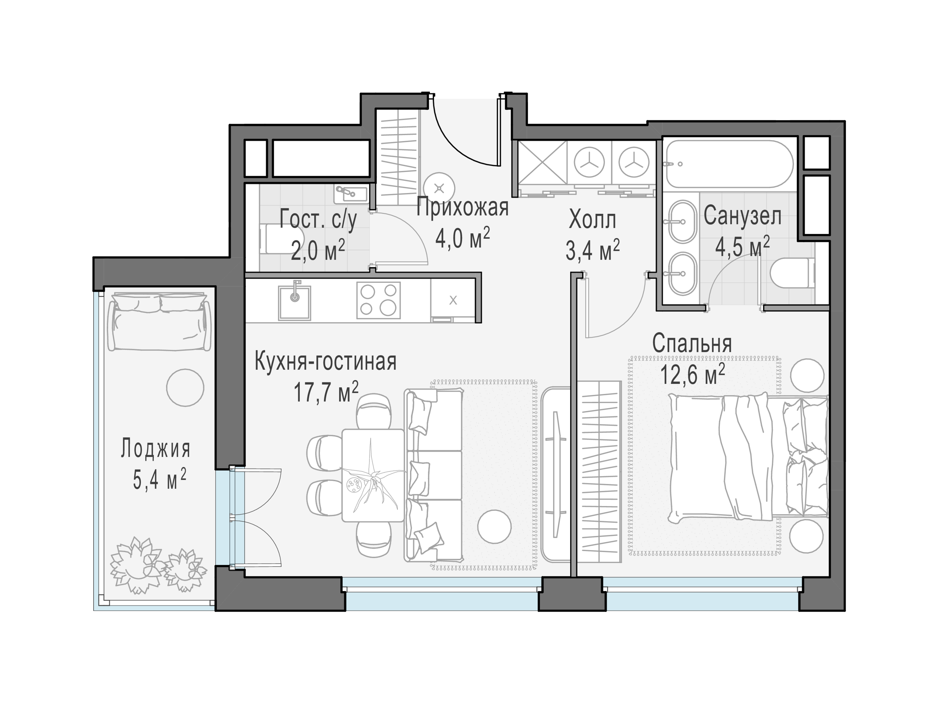 Купить 1к квартиру 51 м² в ЖК Павелецкая от Гранель