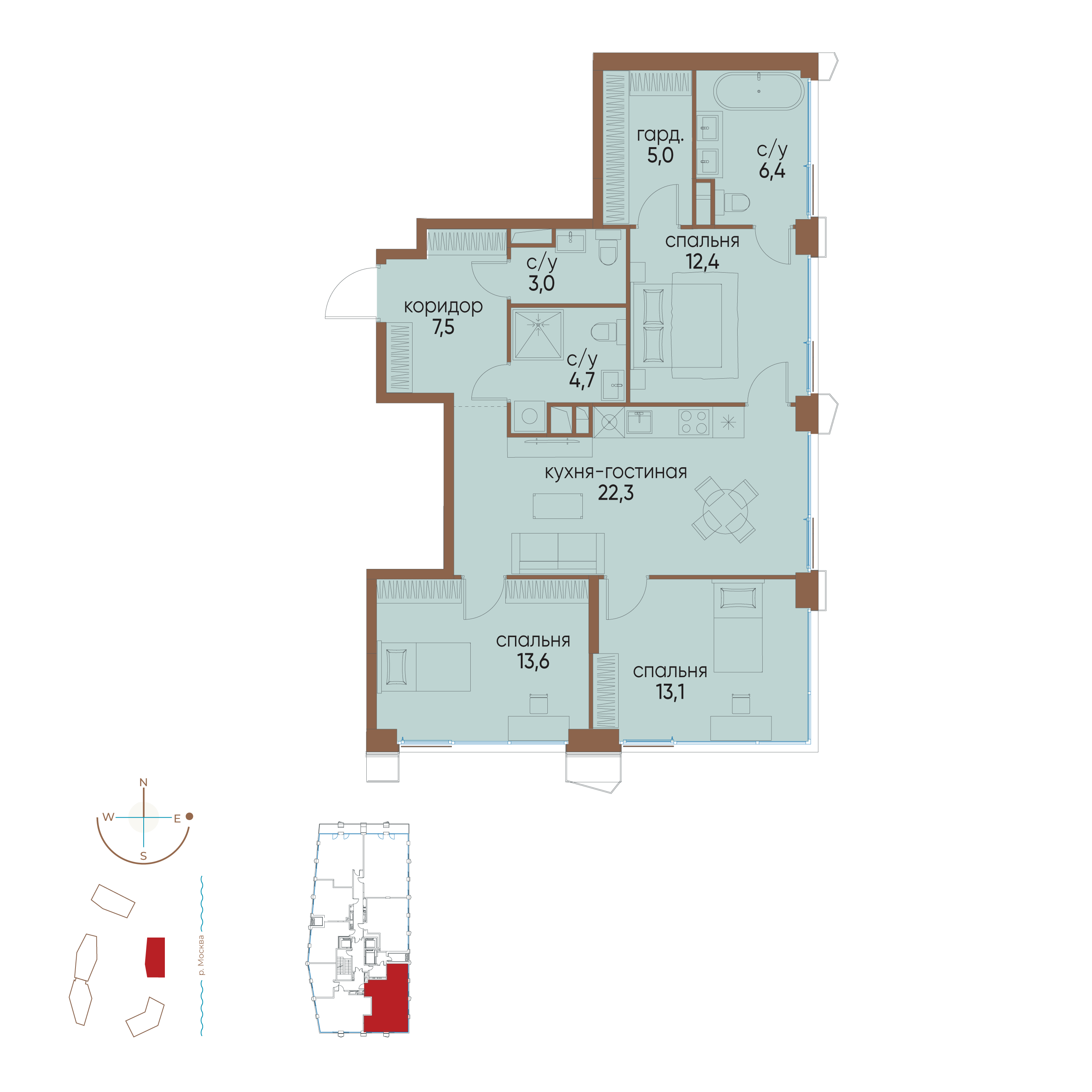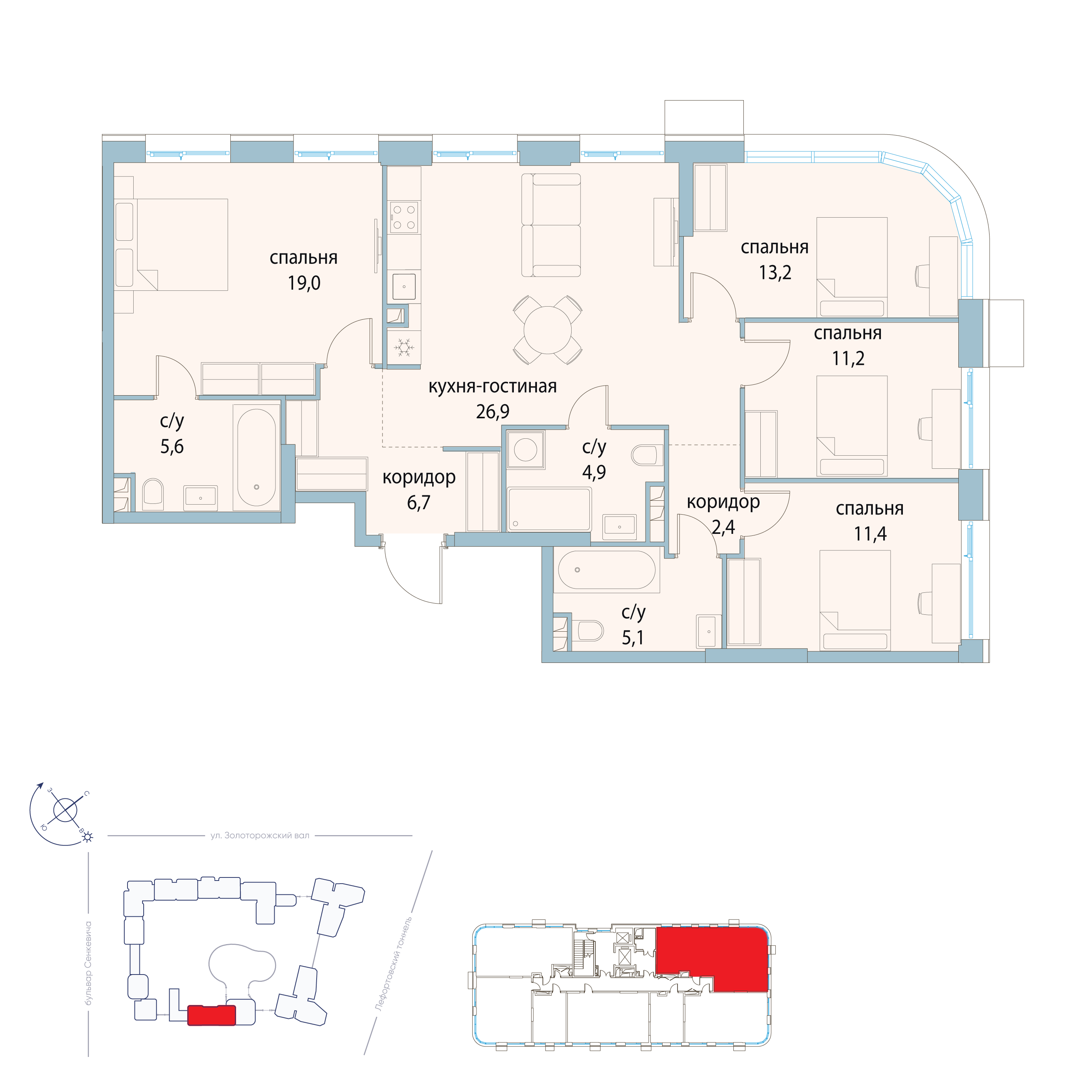 Купить 4к квартиру 103 м² в ЖК Павелецкая от Гранель