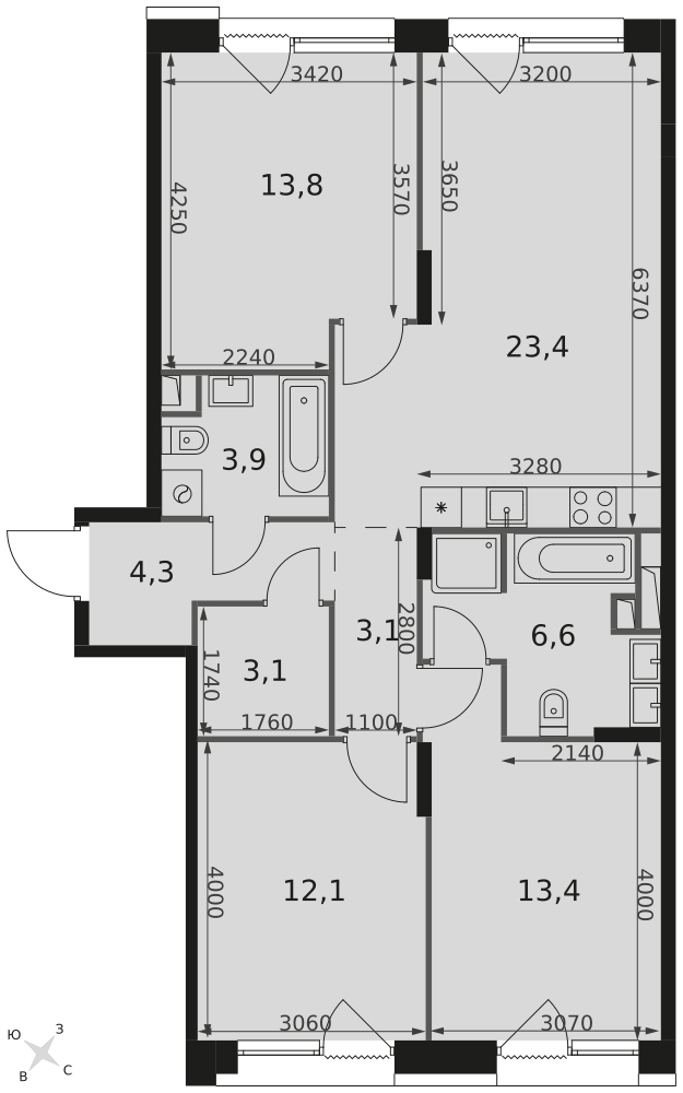 Купить 3к квартиру 66 м² в ЖК Headliner (Хедлайнер)