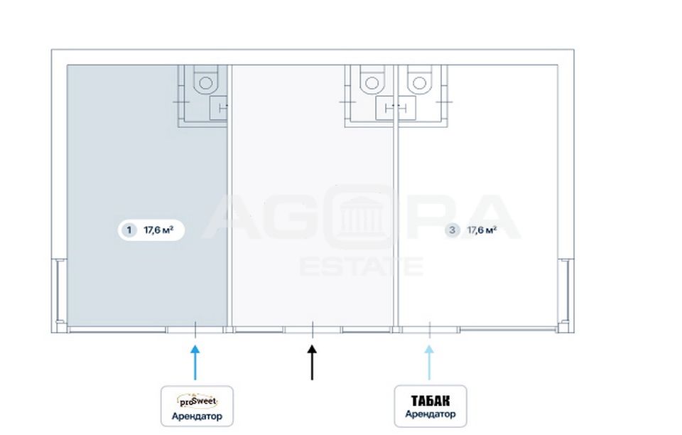 Площадь - 17,6 м2, отдельный вход с улицы, открытая планировка, городские коммуникации, высота потолка - 2,8 м. Ограничений по использованию нет.