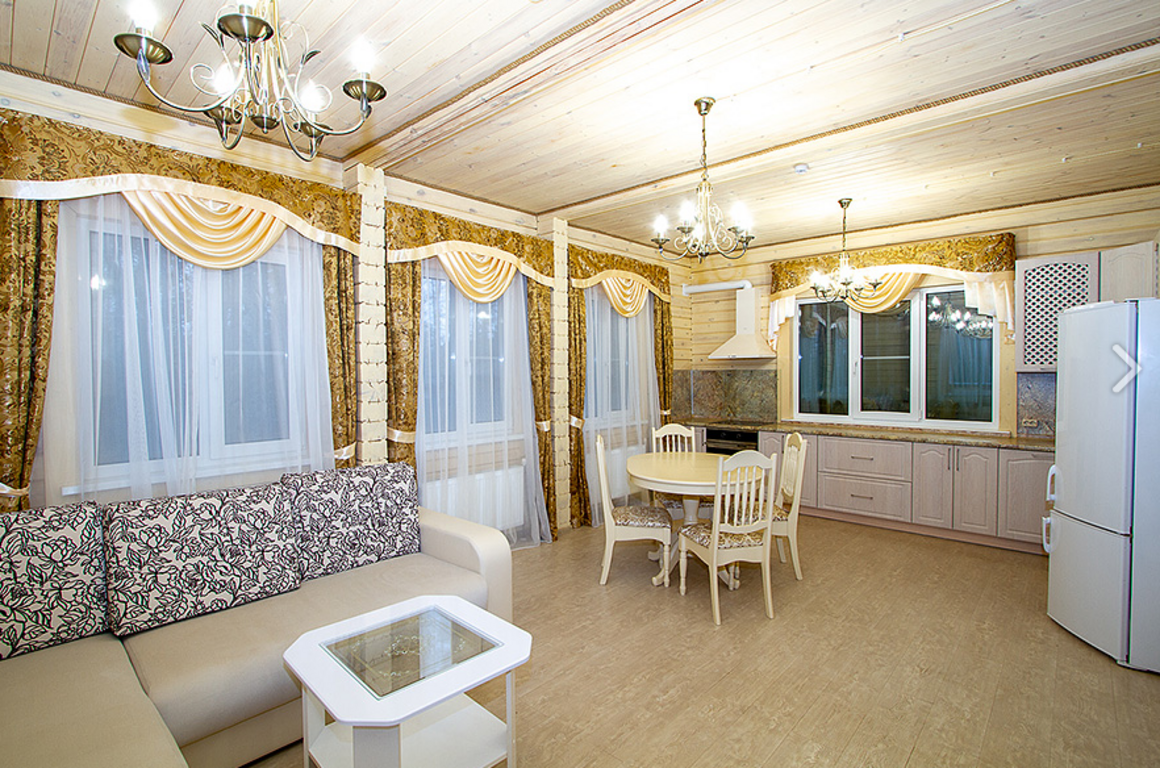 1 этаж: прихожая с гардеробом и большим зеркалом; просторная кухня (с плитой, духовкой, вытяжкой, посудомоечной машиной); гостиная (с мягкой мебелью из натуральной кожи и жк-телевизором); гостевая спальня (с мебелью и жк-телевизором); санузел с душевой кабиной; бойлерная с индивидуальной системой водоочистки.