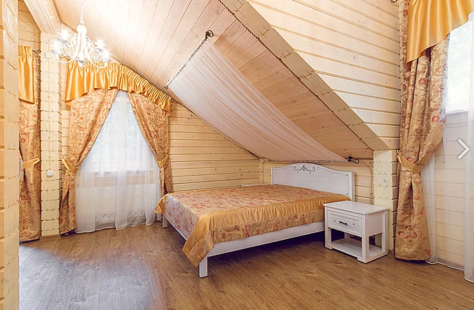 2 этаж: хозяйская спальня с большой кроватью и мебелью; спальня с большим балконом; просторный санузел с ванной, спальня.