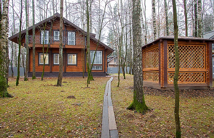 ==ЛОТ 215873 ==Прекрасный загородный дом в охраняемом поселке "Заря", расположенном в живописной деревне Большаково на территории Московской области. Изысканный дом выполнен из северного леса. На территории поселка имеется зона отдыха с баней, домиком-барбекю, прогулочными зонами и детской площадкой. В доме имеется все необходимое для комфортного проживания - просторная кухня с бытовой техникой, уютная гостиная с мягкой мебелью, несколько уютных спален, санузлы с душевой кабиной и ванной. Индивидуальная система водоочистки. Поселок "Заря" предлагает высокий уровень безопасности - круглосуточная охрана, сигнализация в каждом доме, видео-наблюдение. Рядом с поселком есть частная школа "Светлые горы" и детский сад, а также продуктовый магазин, теннисный корт. Недалеко торговые центры "Отрада", "ОБИ", "ОКЕЙ". Удобная транспортная доступность - всего 10 минут на автомобиле до станции метро Пятницкое шоссе, ходит общественный транспорт. Этот загородный дом идеально подойдет для постоянного проживания с семьей. 1 этаж: прихожая с гардеробом и большим зеркалом; просторная кухня (с плитой, духовкой, вытяжкой, посудомоечной машиной); гостиная (с мягкой мебелью из натуральной кожи и жк-телевизором); гостевая спальня (с мебелью и жк-телевизором); санузел с душевой кабиной; бойлерная с индивидуальной системой водоочистки. 2 этаж: хозяйская спальня с большой кроватью и мебелью; спальня с кабинетом и большим балконом; просторный санузел с ванной. Веранда: застекленная веранда с видом на участок.