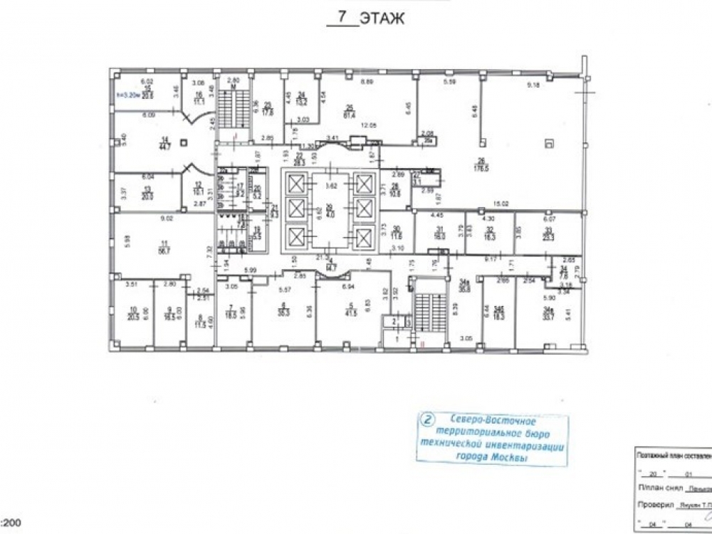 Этаж состоит из офисных помещений площадью от 21 кв.м. до 210 кв.м. Выполнена хорошая офисная отделка. Сантехника на этаже в отличном состоянии. Современные лифты.