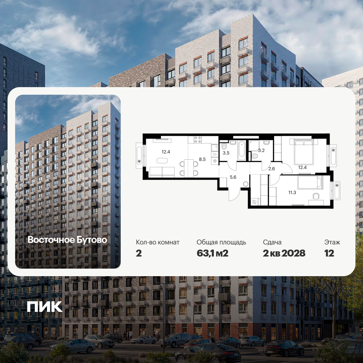 Уникальное предложение в Домодедово: просторная 2-комнатная квартира