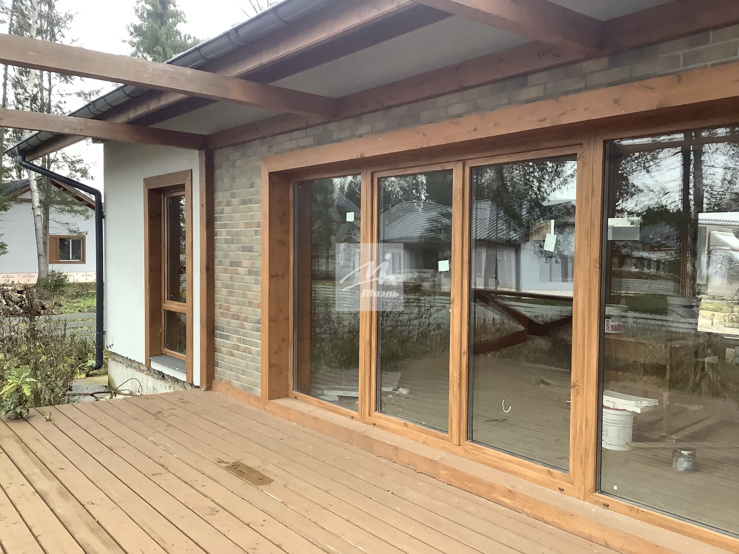 - Продаётся прекрасный 1-но этажный кирпичный новый дом для круглогодичного проживания, расположенный в КП «Пятница КЛАБ», на расстоянии 41 км от МКАД по Пятницкому шоссе. Дом общей площадью 132,4 кв. м. с большой открытой верандой, построен и находится на земельном участке площадью 7, 89 соток. Участок ровный, прямоугольной формы, огорожен забором в едином стиле посёлка. Имеется обустроенная бетонированная площадка для парковки на два автомобиля. Дом капитальный с несущими наружными стенами из крупноформатного керамического блока Porotherm 380 мм, фундамент с монолитной утеплённой плитой во всю площадь дома, крыша с водосточной системой. В доме установлены все окна, установлена входная дверь, панорамные окна в пол с выходом на внутренний двор с красивой террасой. Планировка дома предусматривает возможность реализации ваших дизайнерских идей и вариантов отделки и мебели.