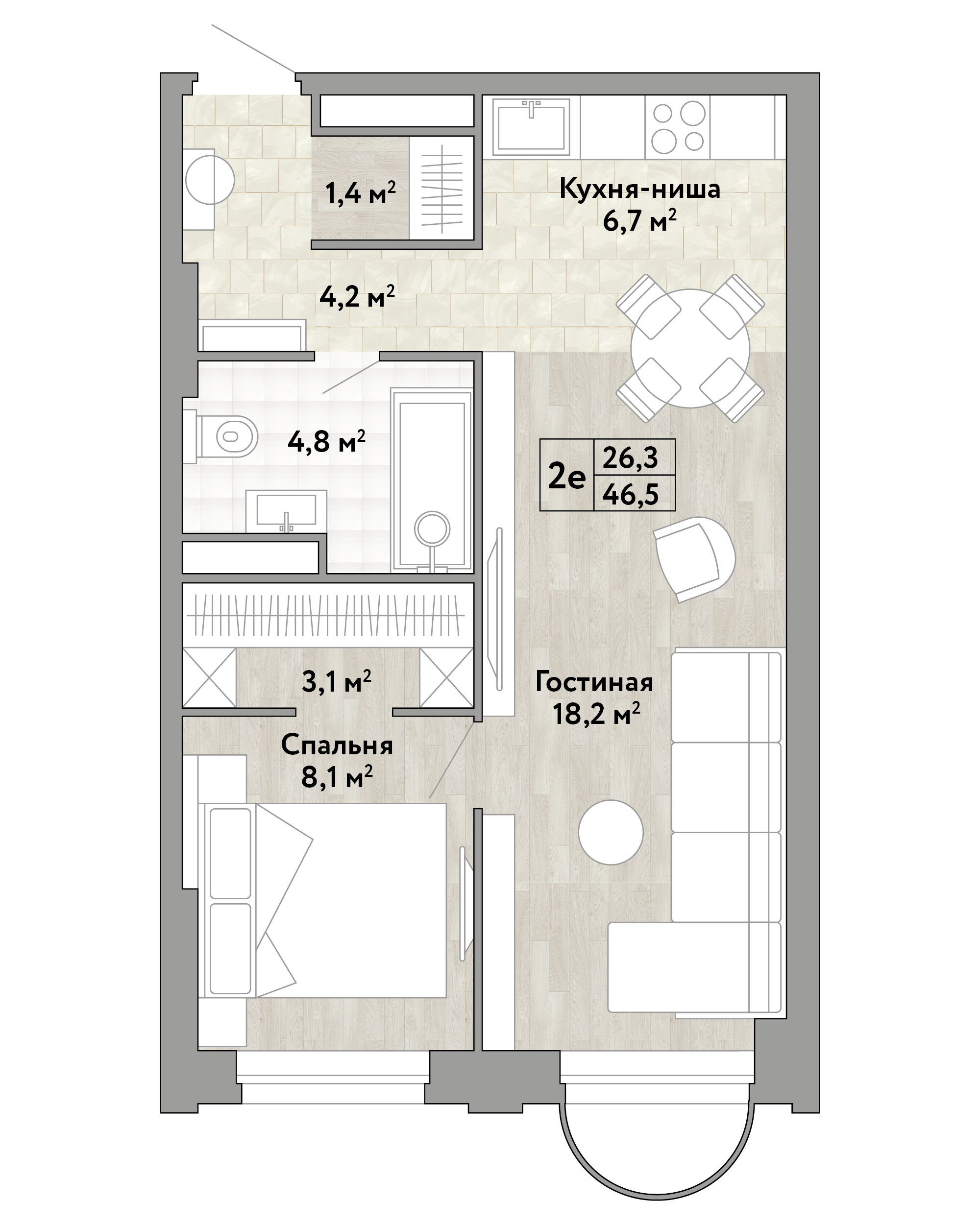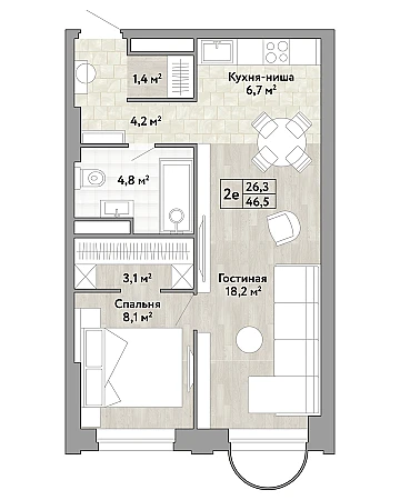 Купить 1к квартиру 46 м² в ЖК Новые Смыслы