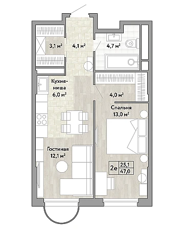 Купить 1к квартиру 47 м² в ЖК Новые Смыслы