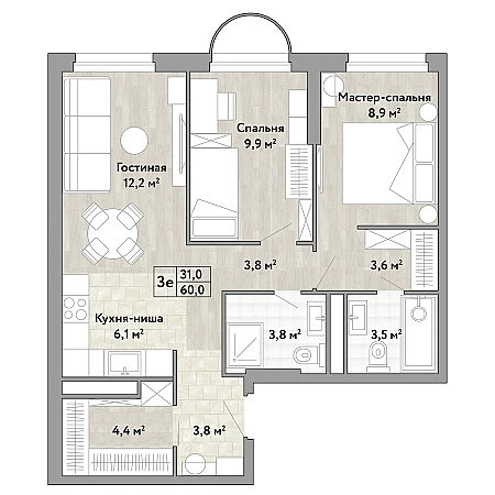 Купить 2к квартиру 60 м² в ЖК Новые Смыслы