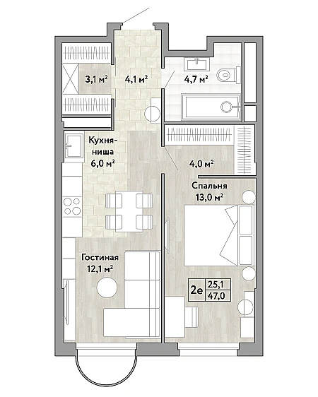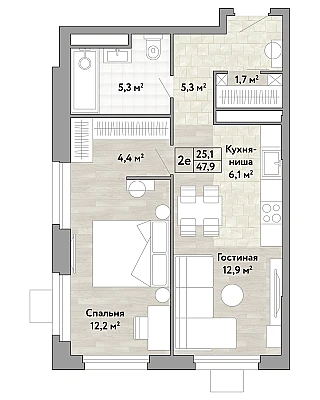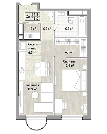 Купить 1к квартиру 48 м² в ЖК Новые Смыслы