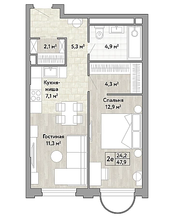 Купить 1к квартиру 47 м² в ЖК Новые Смыслы