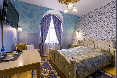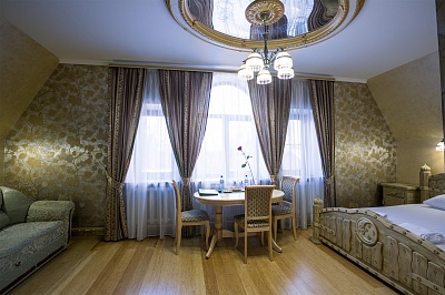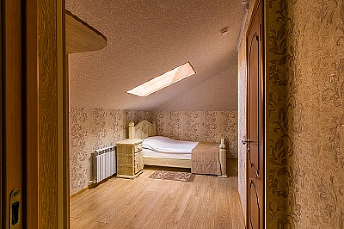 Гостиница имеет два современных здания. Первый корпус 2014 года постройки имеет 3 этажа надземной части с рестораном на 80 посадочных мест. Второй корпус 2016 года постройки имеет 4 этажа надземной части со спа-зоной и спортзалом. Интерьер гостиницы оформлен в стиле благородной классики. Гостям предлагается размещение в уютных комфортабельных номерах площадью от 18 до 50 кв. м. Номерной фонд гостиницы составляет 49 комфортабельных номеров, различных по категории размещения. Все номера гостиницы оборудованы удобной и красивой мебелью ручной работы, выполненной из массива сосны. Имеется вся необходимая техника - кондиционеры, холодильники, чайники, телевизоры, телефоны, Wi-Fi на всей территории. В каждом номере независимо от категории имеется свой санузел.