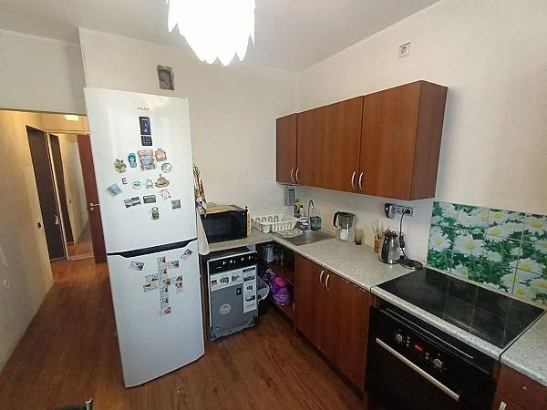 ==ЛОТ 222970 ==Продается светлая уютная 2-комнатная квартира в современном доме в г. Фрязино! В квартире сделан хороший ремонт для себя: заменена проводка, выровнены полы и стены. Удобная, функциональная планировка: кухня 9 кв. м. с выходом на лоджию, две спальни 13 и 8 кв. м., раздельный санузел, коридор с отдельной просторной гардеробной. В квартире остаётся все необходимое для жизни: шкаф-купе, гардеробная, мебель, кухня, детская комната и т. д. Этаж изолирован от лестничной клетки и лифта. Очень хорошие соседи. Чистый, ухоженный подъезд. Отлично развитый район, всё необходимое в шаговой доступности: - Магазины, школы, детские сады; - Детская поликлиника через дорогу, дворец спорта с бассейном; - Кинотеатр, кафе, салоны красоты; - Уютный двор с детской площадкой. Транспортная доступность: 5 минут пешком до ж/д станции Фрязино-Товарная (прямая ветка до Ярославского вокзала, м. Комсомольская). Автобусная остановка рядом с домом, автобусы в Москву (направление м. Щёлковская) Оперативный показ. Звоните!