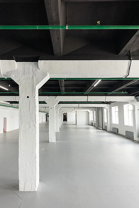 Зданиe имеет двоe воpот, тpи вxодa. Высота потолков 6м.