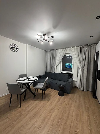 — кухня-гостиная с большим раскладным диваном, ТВ , кондиционером и всей встроенной техникой.