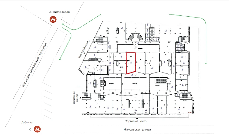 ==ЛОТ 222995 == ОТ СОБСТВЕННИКА, БЕЗ КОМИССИИ. Сдам торговое помещение в БЦ с высокой проходимостью, большой поток потенциальных клиентов с Улицы Никольская, 400 метров до Кремля, в шаговой доступности(1 мин. ) от метро Лубянка и метро Театральная (3 мин. ), на первом этаже находится фуд-корт, что 100% дает гарантию на большой поток людей, на втором этаже находится шоу рум, если ваш бизнес про качество, можно не бояться конкурентов, это помещение идеально подойдет для развития именно вашего бизнеса. Звоните, для организации показа и дальнейшего сотрудничества!