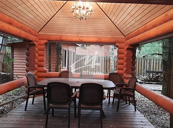+ качественное бревно, ленточный фундамент, натуральная черепица