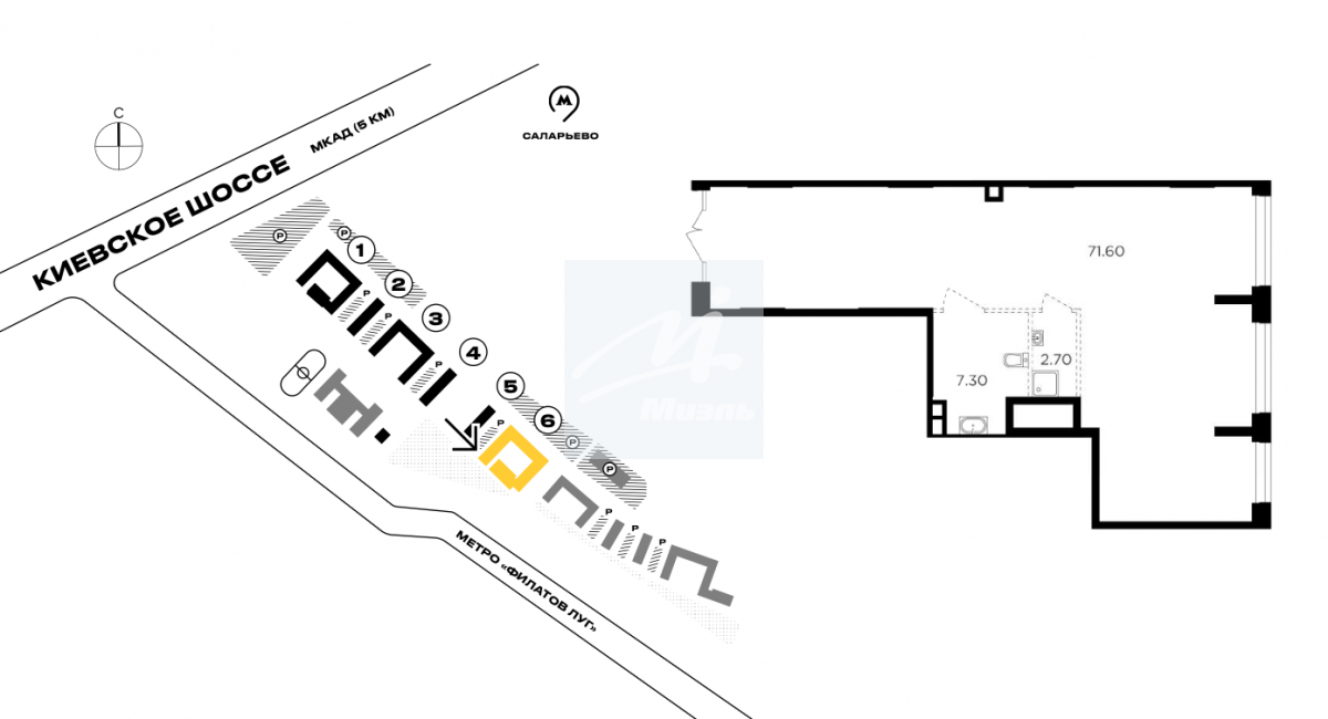 В непосредственной близости строится крупный жилой комплекс бизнес класса «ЮТУ», существенно увеличивающий потенциальную эффективность использования помещения.