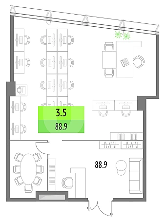 *Количество рабочих мест рассчитано автоматически: от 4,5 м2 на человека до 8 м2 на человека.