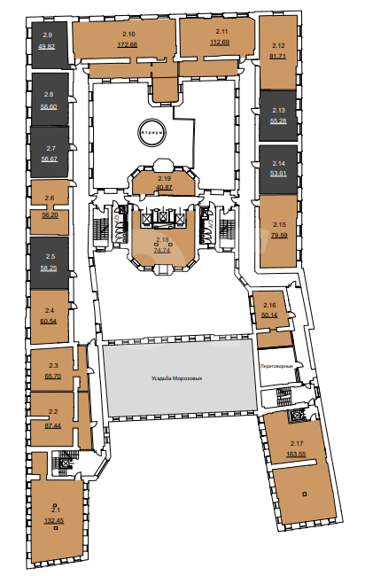 *Количество рабочих мест рассчитано автоматически: от 4,5 м2 на человека до 8 м2 на человека.