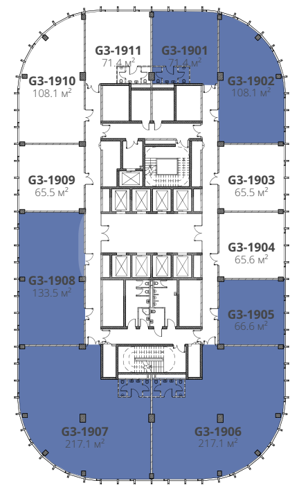 *Количество рабочих мест рассчитано автоматически: от 4,5 м2 на человека до 8 м2 на человека.
