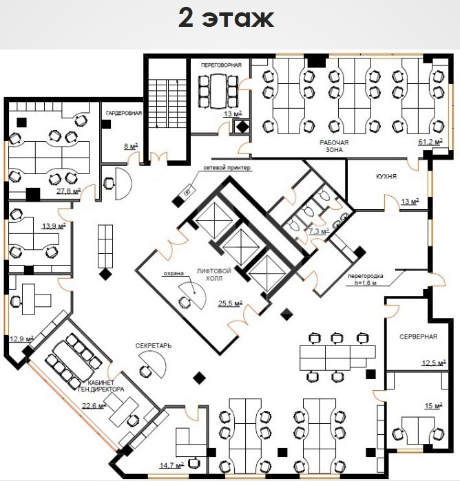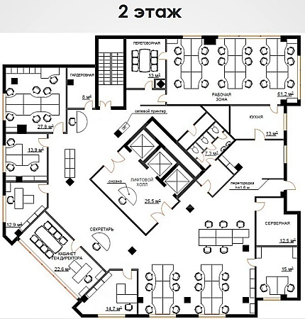 *Количество рабочих мест рассчитано автоматически: от 4,5 м2 на человека до 8 м2 на человека.