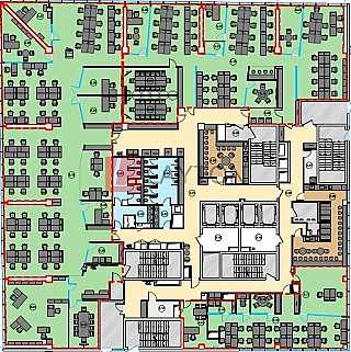 С мебелью. Приточно-вытяжная вентиляция. Центральное кондиционирование. Интернет, телефония. Охрана. Видеонаблюдение. Система контроля доступа. Подземная парковка.