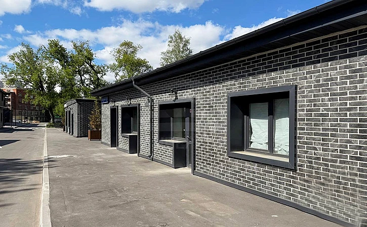 Отделка фасадов выполнена панелями с имитацией клинкерного кирпича. На территории организованы зоны отдыха, дополнительно имеется возможность для организации летних веранд и кафе.