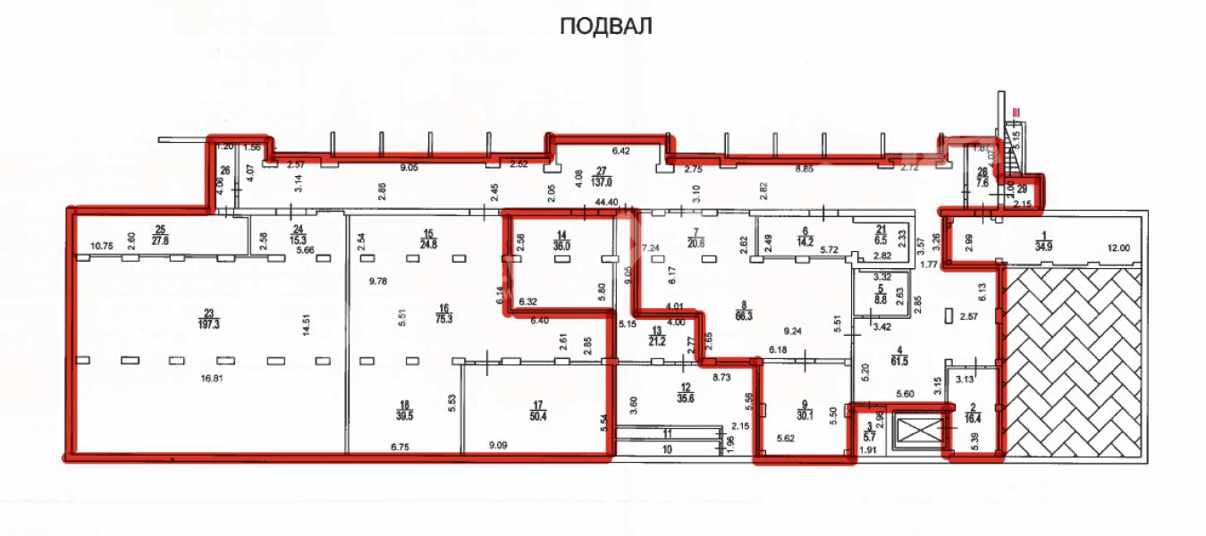Помещение расположено в подвале пристроенного в жилой дом здания.
