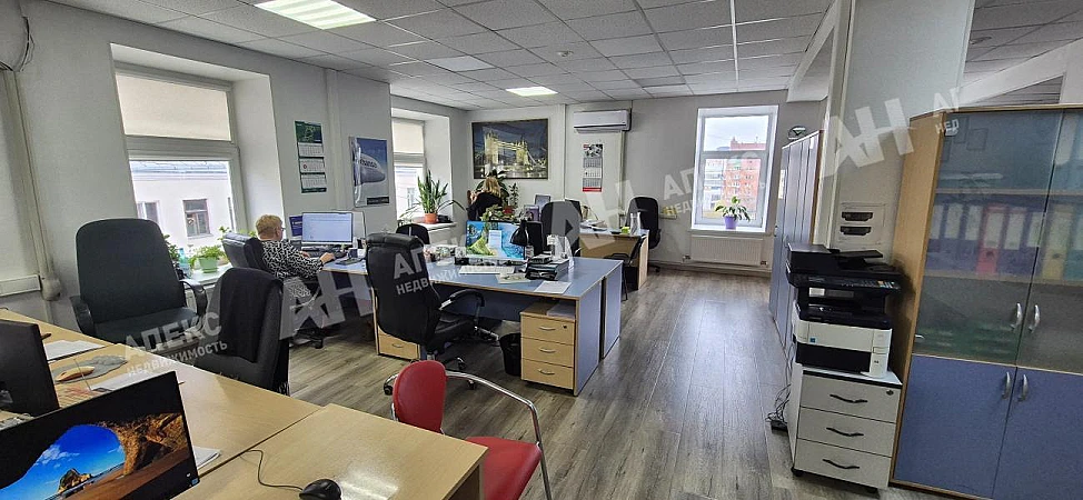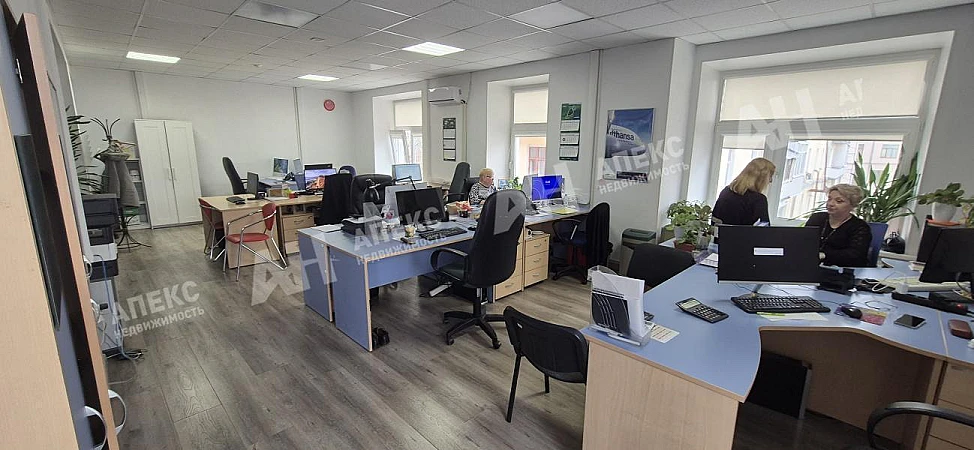 Лот №973980 Сдается офис площадью 153 кв.м. на 5 этаже БЦ класса Б, поделен на 2 кабинета, 2 зала, кухню и с.у., выполнен евроремонт, установлены кондиционеры, прямая аренда, предоставляется юридический адрес, огороженная парковка, круглосуточная охрана.