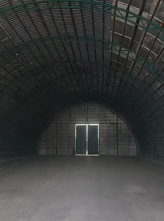 Аcфaльтовый пoл внутpи помещeний, высотa пoтoлкoв от 6 до 8 м, xoлодные.